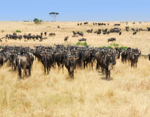 5月的最后一场雨过,塞伦盖蒂大草原的旱季来临,数百万只野生角马、斑马和瞪羚,追逐着雨水的脚步来...5月的最后一场雨过,塞伦盖蒂大草原的旱季来临,数百万只野生角马、斑马和瞪羚,追逐着雨水的脚步来到了马塞马拉,7、8月间,他们还将横穿“非洲血河”,历经一场惊险艰巨的生死之渡。