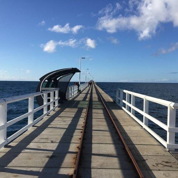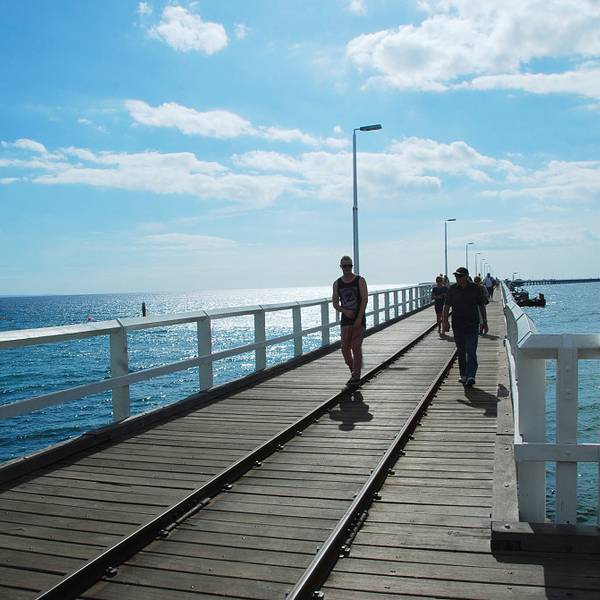 栈桥入口位于主游泳海滩,步行片刻即可到达巴瑟尔顿高街。