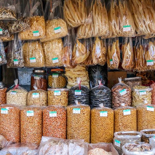 - 走到干货一条街与鲜货一条街交界的路口,画风马上就变了,仿佛从“杂货铺”逛到了“渔港市场”金骆驼