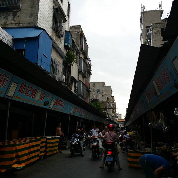 海口东门市场以大规模、好品质的海产干活和鲜货批发市场声名远扬,一条街卖干货,一条街卖鲜货,沿街没什么小吃,步行逛完大概15分钟。这里是骑楼老街每天最最热闹的地方。海口东门市场以大规模、好品质的海产干活和鲜货批发市场声名远扬,一条街卖干货,一条街卖鲜货,沿街没什么小吃,步行逛完大概15分钟。这里是骑楼老街每天最最热闹的地方。东门市场干货街所在的“东门街”(新民东路)与“西门街”(新民西路)相对,迄今也有500多年历史了。干货一条街上的摊点非常多,据说每年清明节前后,返琼的东南亚华侨总喜欢来这逛一逛,买上一些墨鱼、虾米、鱿鱼带回去。如果嘴馋,不妨买一点海南牛肉干尝尝,看看味道与你们家乡的牛肉干有啥区别。或是尝一尝南海打捞上来的鱿鱼丝,全市的牛肉干和鱿鱼丝可能大多数都是从这里批发出去的。海产干货的种类聆郎满目,几乎只有你想不到的,没有这儿找不到的。走到干货一条街与鲜货一条街交界的路口,画风马上就变了,仿佛从“杂货铺”逛到了“渔港市场”。由于海鲜存活需要不断替换新鲜的海水,海鲜一条街总是湿漉漉的。这里毕竟是一个批发市场,鱼贩们在渔港与渔民进行第一次交易后就把最新鲜的海鲜运到东门市场,等着海鲜餐馆采购员或其他市场的鱼贩来这里“倒鱼”。由于鱼贩在这里一买就是一箩筐,会经常骑着个小三轮来回“捡鱼”。当然也有市民直接来东门市场选购烹饪食材,回去给家人做一顿丰盛的海鲜料理,在这里购买的价格肯定会比社区菜市场或超市的价格便宜一些。在东门市场能看到/买到的海鲜种类之齐全,非其他市场能比,运气好的话能大饱眼福,看到一些名贵或稀奇古怪的海鱼。比如,高档海鲜中的野生红星斑在海鲜店一般卖到800到1500每斤,在这里可能以1/3的价格就能买到。走过海鲜一条街,路面又干爽了起来,道路两边叫卖的已经是蔬菜了。呼,自由行最大的乐趣之一当然是逛农贸市场啦,感受当地风土民情的不二之选。而且经验告诉我,市场附近肯定有最local的当地美食,果然,下一段水巷口街就要开吃了!