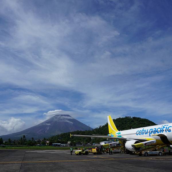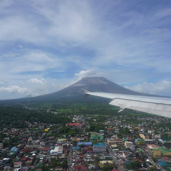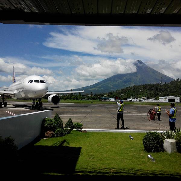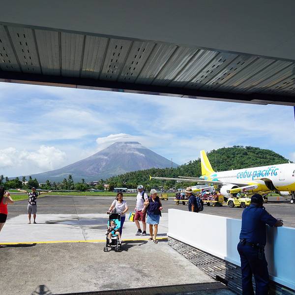 你别说,去见“火山”的人还真不少。马尼拉尼诺·阿基诺国际机场似乎“在飞机上可以拍到火山全貌”已经成了人尽皆知的秘密。于是你会看到一个有趣的画面,就是在飞机降落的过程中来自世界各地的旅游者都在不约而同地做着左右窗互看的动作,嘴里还不停念叨着“where?where??”飞机驶过 阿尔拜 海湾,人们开始沸腾:“Here it is!Here it is!!”马荣的轮廓越见清晰,快门的声音也越发猛烈。黎牙实比机场超乎意料的幸运!今天的马荣没有被太厚的云层包裹,火山口还盘旋着祥云,和孤独星球的封面简直如出一辙。黎牙实比机场人们迟迟不肯走入到达大厅,恨不得在这这里拍它个三天三夜。黎牙实比机场 展开