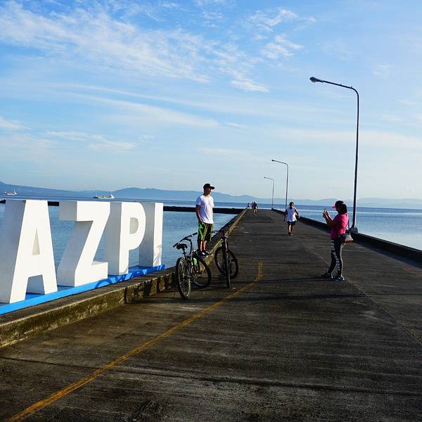 金骆驼 我估计走到竖着LEGAZPI字母的海堤尽头看日出会比较好(我在海边走的那段,霞光的正下方是一片...五点,阿姨已经在楼下等我们了,我们开了一小段车,把车停在了boulevard上一座纪念碑的位置。日出前深蓝色的海面和天空忒美,大道上已经开始有人晨跑。
