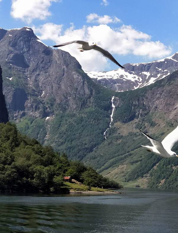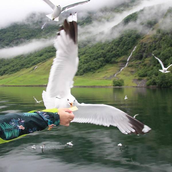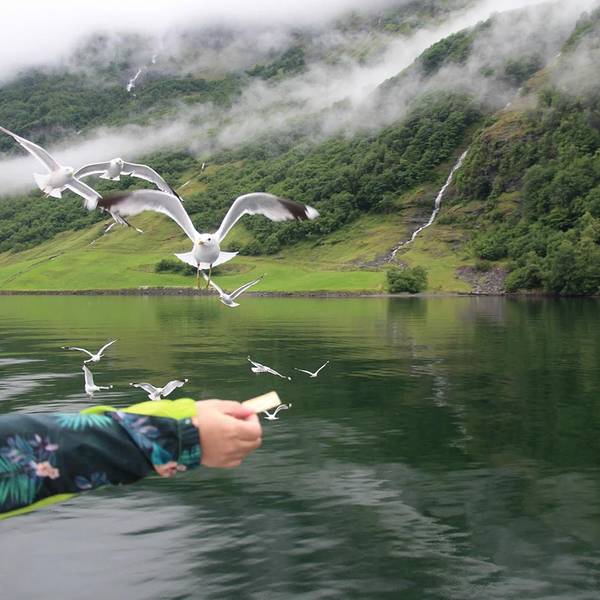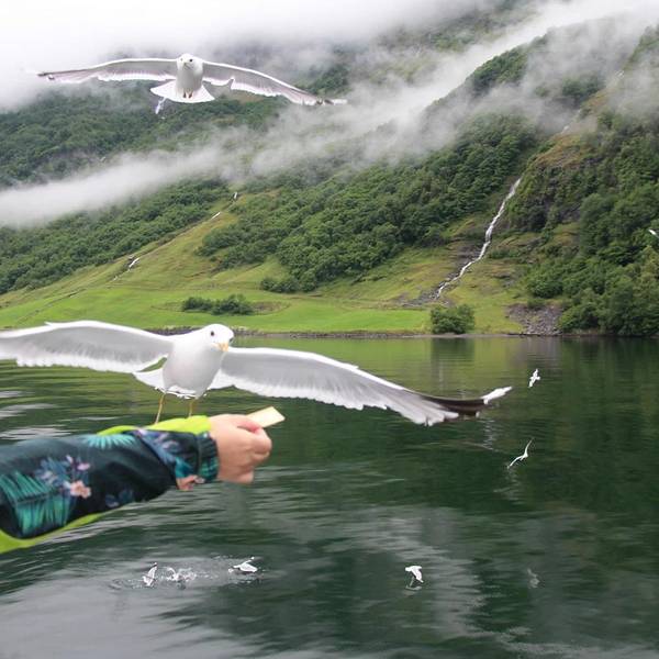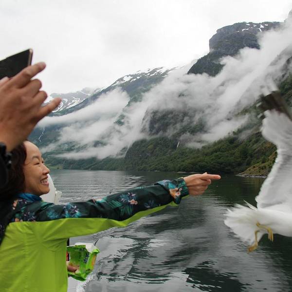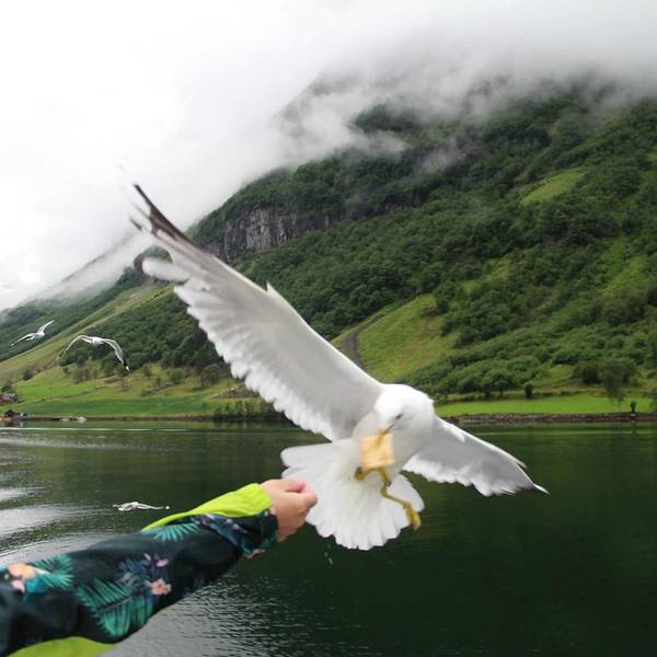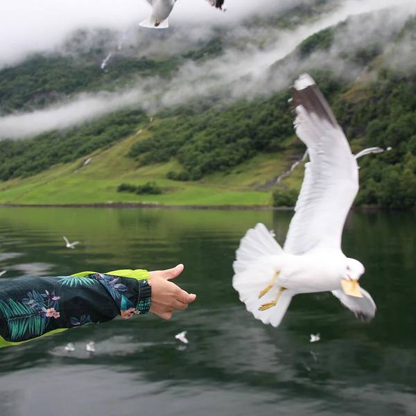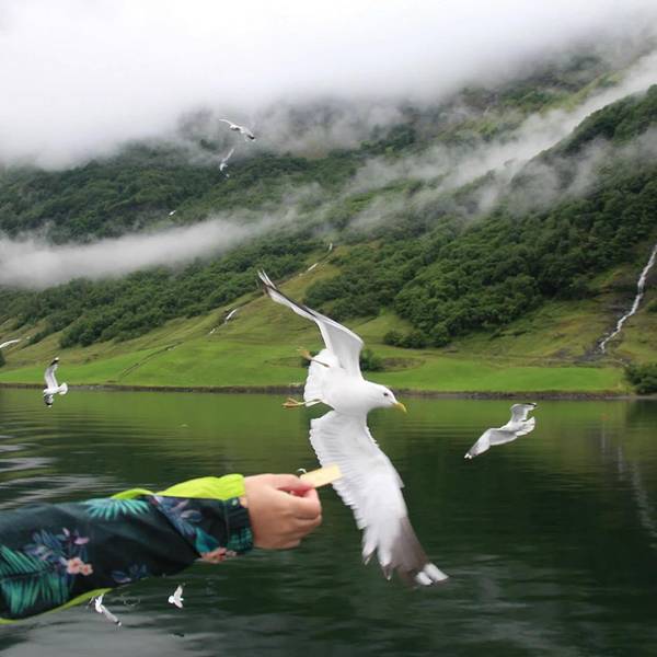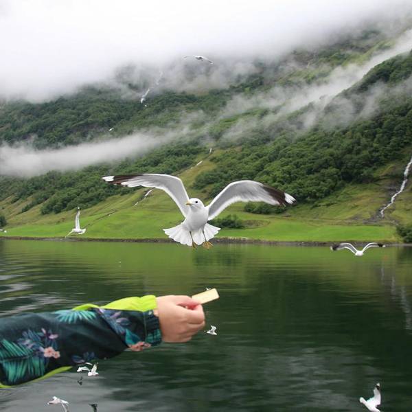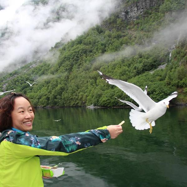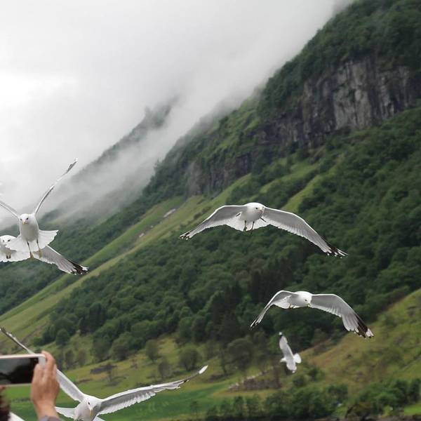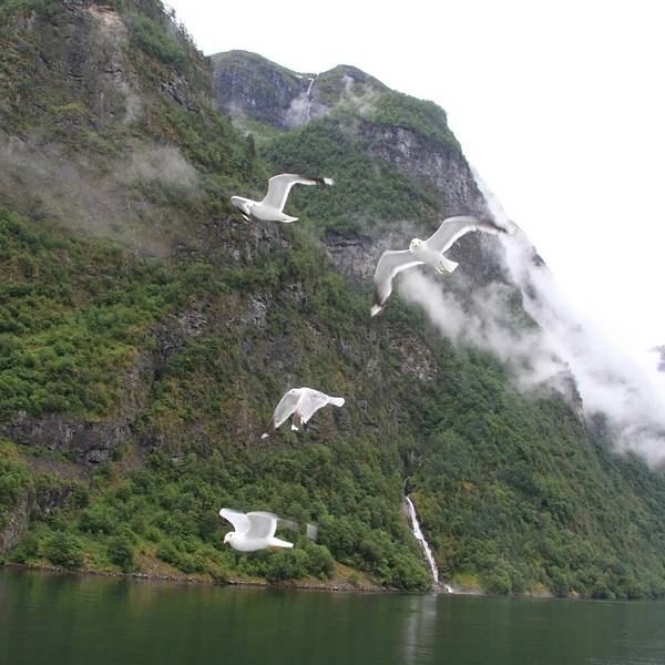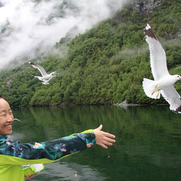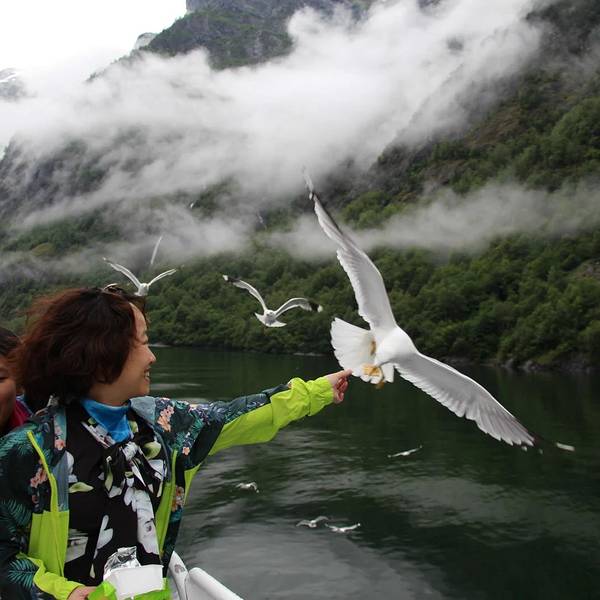 我真的很羡慕:他们可以在喜欢的地方停下来,将自然风景尽收眼底,也可以拿出相机记录下挪威的美,和...下了车,我们要乘坐峡湾游船(自费项目,70欧元,2小时)。领队告诉我们,峡湾是连着海的,那里飞着成群的海鸥,那些海鸥会跟在游船后面,等你喂它们;运气再好一点,可以看到海豚跃出水面;如果运气极好,说不定可...下了车,我们要乘坐峡湾游船(自费项目,70欧元,2小时)。领队告诉我们,峡湾是连着海的,那里飞着成群的海鸥,那些海鸥会跟在游船后面,等你喂它们;运气再好一点,可以看到海豚跃出水面;如果运气极好,说不定可以看到鲸鱼。在挪威,天气状况比较难以预测。但是不同的天气可以凸显出峡湾不同的美。游船开启,那些海鸥真的跟在我们后面。我拿出一包饼干,学着其他游客的样子举在手里,海鸥果然靠近我,然后从我手中啄去饼干。两边是高耸的山,云依然低低地环在山峰,若干细小的瀑布从山间倾泻而下,空气好清新。游览过半,雨又下下来了,雨滴打在船上,打在人们身上。大部分人都选择了回舱避雨,可我一点也不在意,因为雨中的峡湾也是那么美,朦胧中有一种神秘感。雨,把本来就清新的空气洗得更加湿润,清凉。闭上眼睛,深深地呼吸,感觉到雨滴在细语,峡湾的每一处景物都在轻轻舞动。云几乎一直飘浮在我们身边,它们颜色淡淡的,近乎透明。之所以不称它为雾,是因为它们还保持着云应有的姿态。回程途中,我妄图用相机记录下沿途的风光,可是我和相机怎么也不能表现出峡湾的美。看着停在路边的自驾游者,我真的很羡慕:他们可以在喜欢的地方停下来,将自然风景尽收眼底,也可以拿出相机记录下挪威的美,和家人分享。可是我却只能徒劳地按下快门,然后对着晚一秒拍下来的照片捶胸顿足。 展开