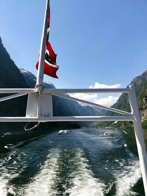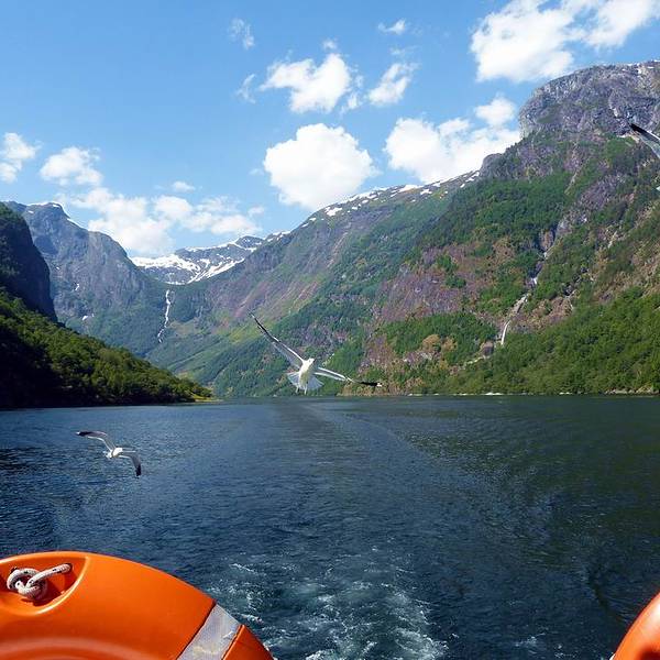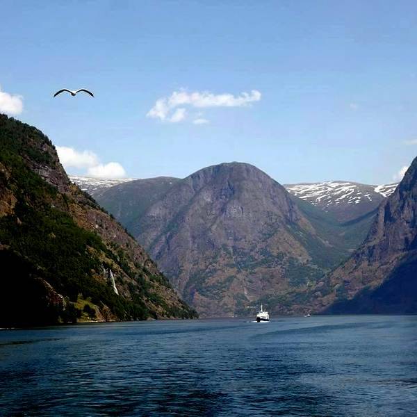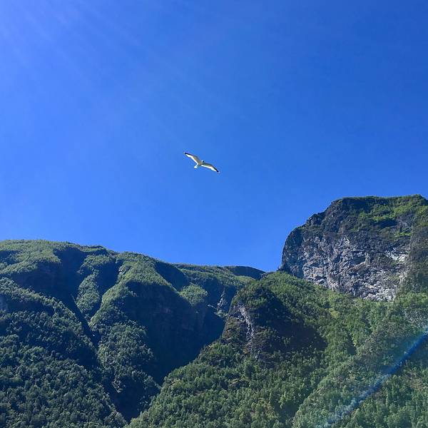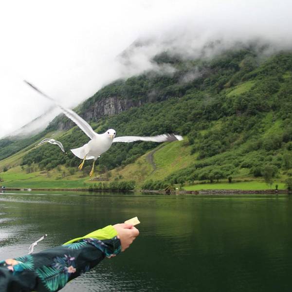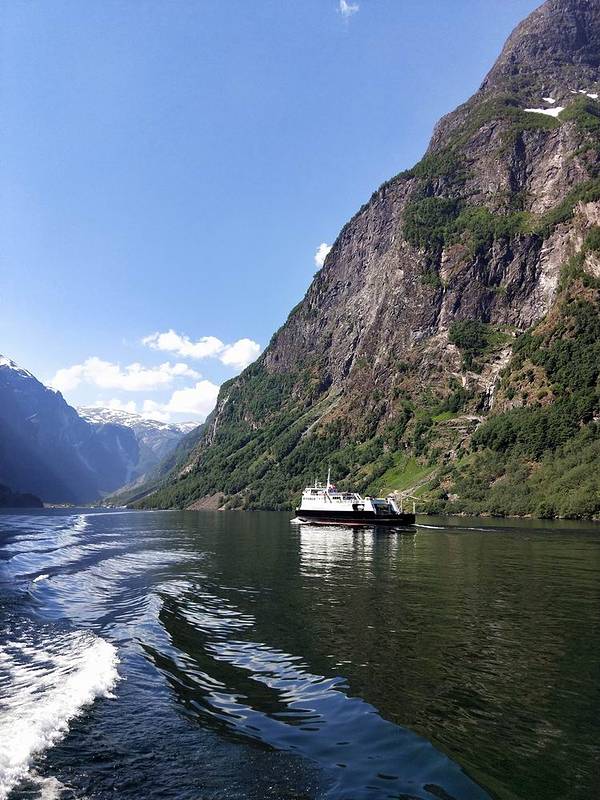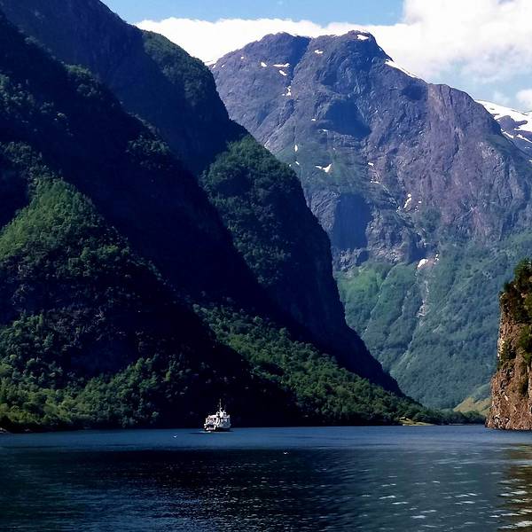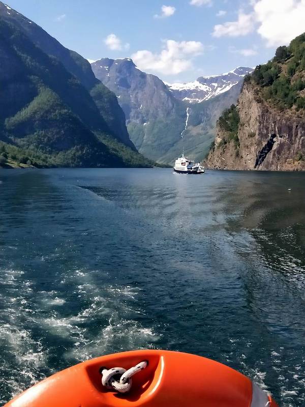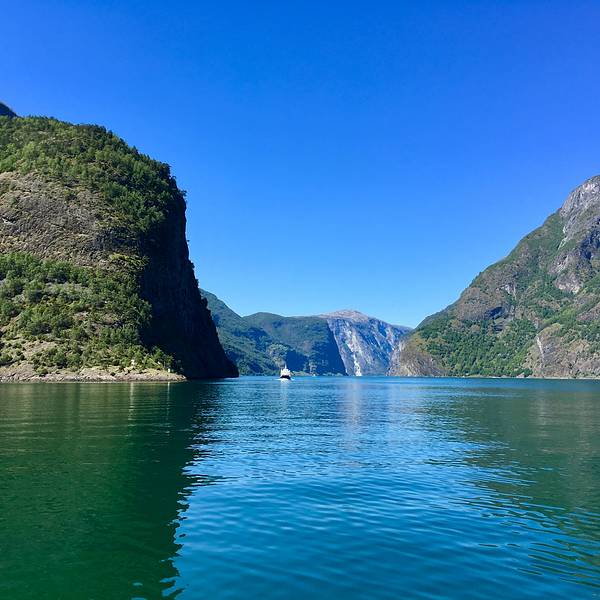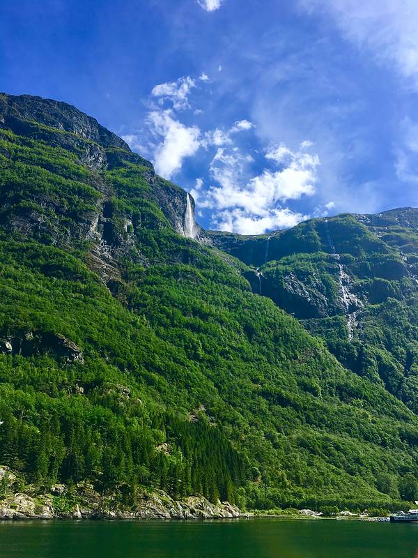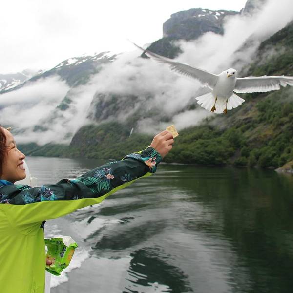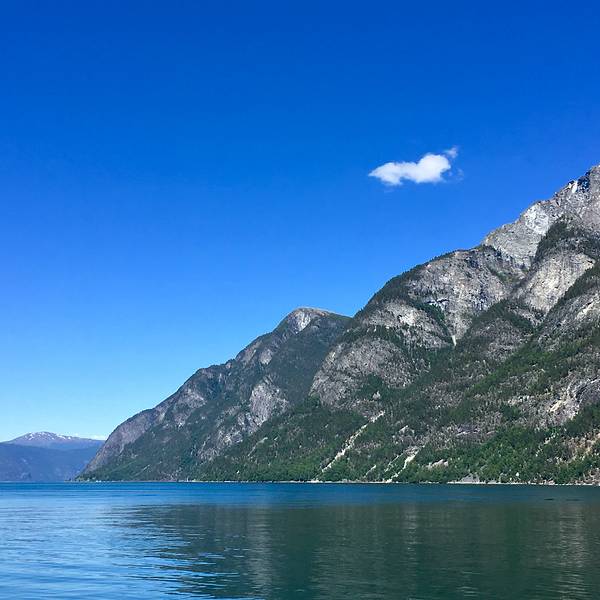 松恩峡湾(Sognefjord)属于松恩-菲尤拉讷郡(Sogn og Fjordane),是挪威最狭长的峡湾,全长约204公里,最深处约1308米,峡湾旁山峰最高达2405米。松恩峡湾的分支纳柔依峡湾(Nærøyfjord)与艾于兰峡湾(Aurlandsfjord)都是松恩峡湾的精髓所在。在轮船上结识了4位日本大妈,最小的65岁,最大的78岁,她们不是跟团,而是四个好友结伴而来。有人负责做工作,有人负责翻译,有人负责拍照,而年纪最大的大妈完全看不出这个年纪,身手灵活,性格开朗健谈。自己用着蹩脚不太熟练的日语和她们聊天,聊旅行,聊世界,聊人生也是很魔幻的体验。不知自己到这个年纪的时候,是否还能继续如此潇洒的走世界呢。