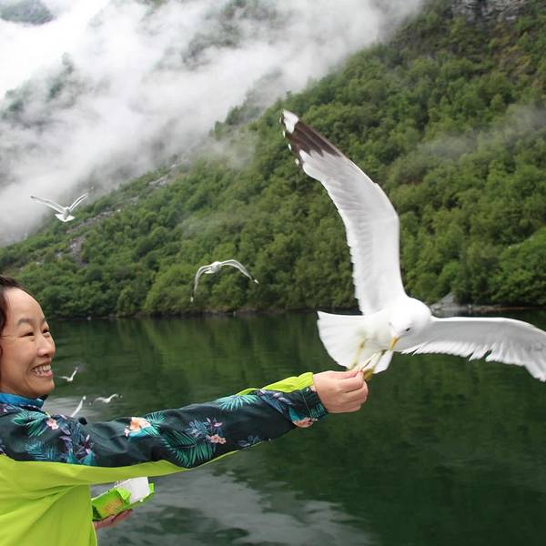 松恩峡湾(Sognefjord)属于松恩-菲尤拉讷郡(Sogn og Fjordane),是挪威最狭长的峡湾,全长约204公里,最深处约1308米,峡湾旁山峰最高达2405米。松恩峡湾的分支纳柔依峡湾(Nærøyfjord)与艾于兰峡湾(Aurlandsfjord)都是松恩峡湾的精髓所在。在轮船上结识了4位日本大妈,最小的65岁,最大的78岁,她们不是跟团,而是四个好友结伴而来。有人负责做工作,有人负责翻译,有人负责拍照,而年纪最大的大妈完全看不出这个年纪,身手灵活,性格开朗健谈。自己用着蹩脚不太熟练的日语和她们聊天,聊旅行,聊世界,聊人生也是很魔幻的体验。不知自己到这个年纪的时候,是否还能继续如此潇洒的走世界呢。 展开