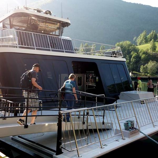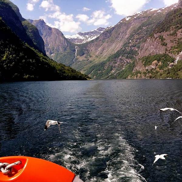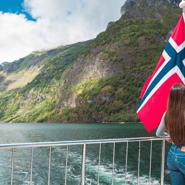 游艇环境很好,上下两层,可以在甲板看美景。突如其来的阳光,让松恩峡湾明亮许多大游轮驶来,就知道是我们的premium游艇。游艇环境很好,上下两层,可以在甲板看美景。游艇慢慢驶进松恩峡湾,天空又放晴了,云层慢慢散去,金光从云层流出洒向峡湾,此时甲板上站满了人,到处是咔擦咔擦声。突如...大游轮驶来,就知道是我们的premium游艇。游艇环境很好,上下两层,可以在甲板看美景。游艇慢慢驶进松恩峡湾,天空又放晴了,云层慢慢散去,金光从云层流出洒向峡湾,此时甲板上站满了人,到处是咔擦咔擦声。突如其来的阳光,让松恩峡湾明亮许多。松恩峡湾是四大峡湾最长的峡湾,高山陡峻,瀑布飞流直下。挪威红色的国旗在风中飘起,这就是最迷人的挪威了,远离尘嚣,干净透亮,一个能让人心静的国度。 展开