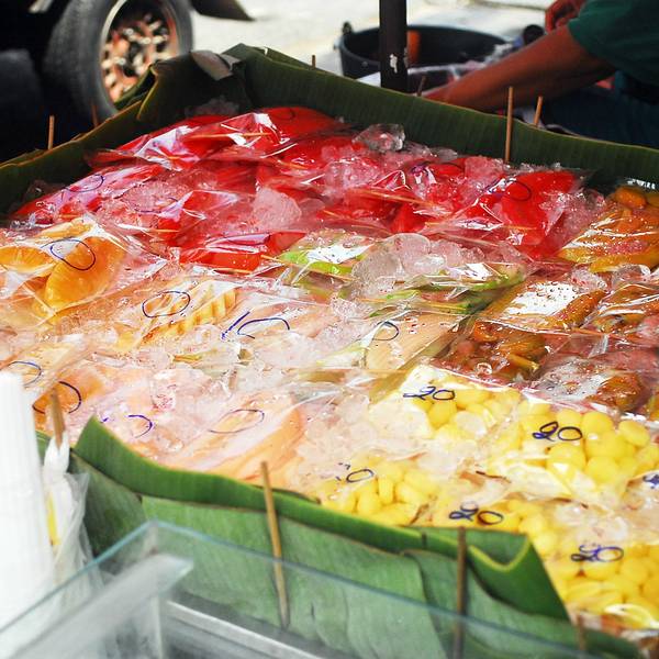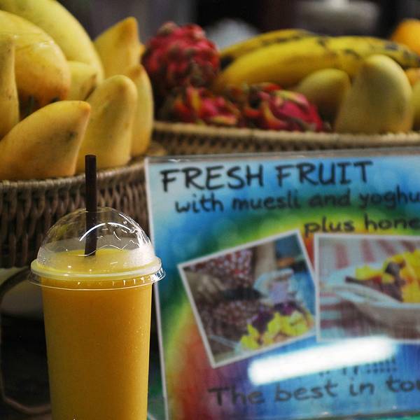 接着去了离塔佩门很近的松撇市场。买了红毛丹(25B/公斤)和莲雾(45B/公斤),水果真是太便宜了,还去市场里面吃了Fruit Smoothies和Fruit salad。好大一碗水果沙拉才50B,超大一杯芒果Smoothies才25B,味道和国内...接着去了离塔佩门很近的松撇市场。买了红毛丹(25B/公斤)和莲雾(45B/公斤),水果真是太便宜了,还去市场里面吃了Fruit Smoothies和Fruit salad。好大一碗水果沙拉才50B,超大一杯芒果Smoothies才25B,味道和国内完全不一样,特别浓,而且没有加糖,纯粹的芒果味,黏黏的,吃惯了国内加太多水太多香精的沙冰,反而还真有些吃不惯这么原汁原味的。