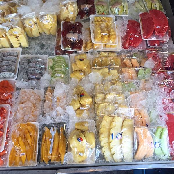 不过,这个小小菜市场可是满足了我们对于水果的所有期盼。看,超多水果,泰国芒果超好吃!真是太巧了