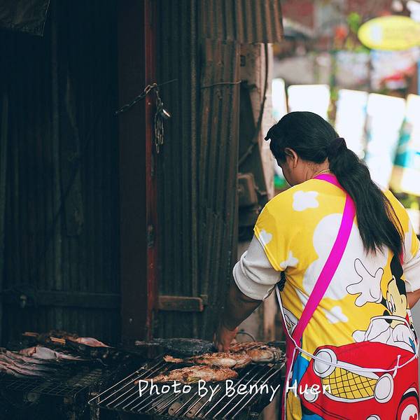 逛菜市场观看那里卖得蔬菜和鱼,能够真实鲜明地感受到那个国家人们的生活。“啊!这个国家的人吃这样的东西呀……是什么味道?”确实看到吃的东西不一样,甚至有些蔬菜水果都没看到过能深深感受到“啊,我终于没有在国内呀!”那种地域不同的感觉。所以,有机会就去当地集市和菜市场吧!这次好幸运的是有个这么近的菜市场在边上,虽然这个市场又小又挤,什么都卖。卖菜的边上竟然是家卖裤子的,大米铺旁则是卖泳衣的!不过,这个小小菜市场可是满足了我们对于水果的所有期盼。原本应该去古城外市郊的瓦洛洛市场的,但是因为门口小菜场就好便宜,一点没有因为他在古城内就胡乱涨价,一口气买了超多水果的两只对瓦洛洛再也没什么期待了!买的水果还因为吃不完跟着我们坐车到PAI县,还好一路都有小冰箱保鲜。看,超多水果,泰国芒果超好吃!松撇市场与我们也是超有缘的,走了几次都还是会路过它。昨天原本是准备抄小路去清曼寺参观完再回旅馆,但是竟然走错了路,绕着绕着还是绕到了松撇市场来,买了超多水果。所以,这次已经是第三次来市场了,但是却不是今天最后一次来市场哦!原来,我们一会儿要去的那个烹饪学校在开始学做泰菜前还有个去当地市场参观一项内容,而烹饪学校要领我们去的当地市场正是松撇市场呢!真是太巧了!阿婆烤的两个物体都有点诡异,红色那个长得像洋葱却不是洋葱,绿色那个和粽子似的却不是粽子。所以说,在国外菜市场总是能看到不认识的古怪东西,好奇心十足的海蒂总是想试试!遇到菜市场酱菜铺喵星人,和喵星人示好的K掌柜K掌柜,你吓到喵星人啦!你看人家都怕你了!