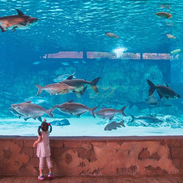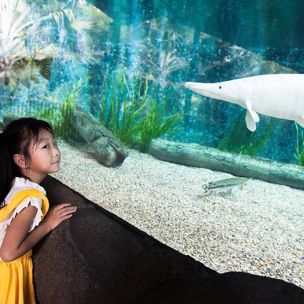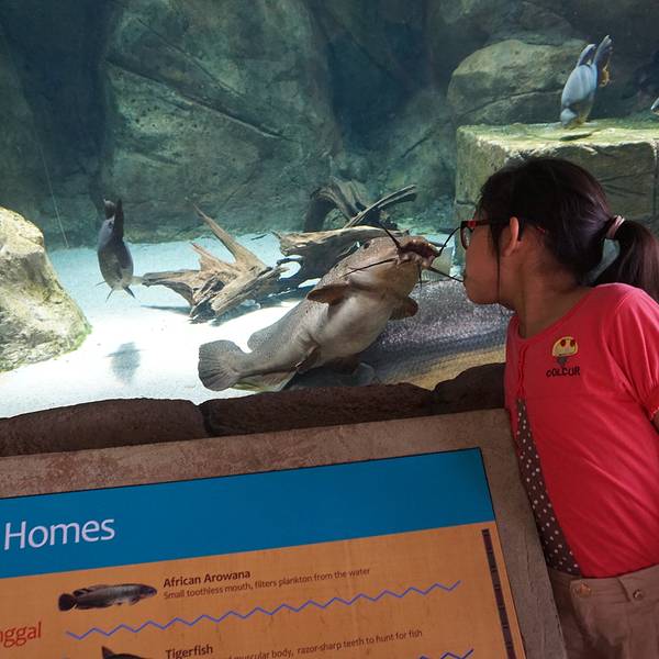 ...验哟~~虽然游览时间不算长,但是忽而加速忽而俯冲,偶尔溅起几朵浪花,绝对给游玩增加了一丝乐趣~河川生态园顾名思义就是以河川为主题的动物园🐟啦!据说也是亚洲唯一一个呢!