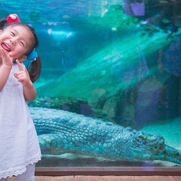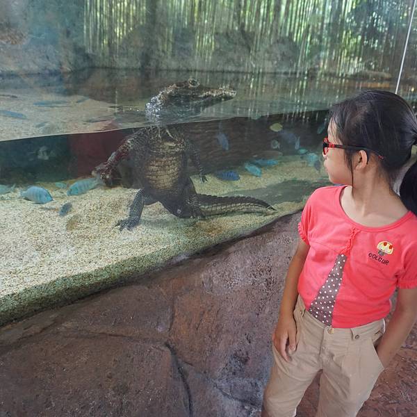 开放时间:每天:9:00 – 18:00(最后兑换时间:17:00)看大鱼的时间到了,贝壳儿每次去沃尔玛和姥姥去买肉的时候,都会在卖鱼的柜台看好久大鱼游来游去,这回让你一次看个够。都是大大大大大鱼,都在不停的游来游去。这个鱼太逗了,还能在水里打哈欠呢身后巨大的鳄鱼,这估计是她见过的最大的鳄鱼了吧,伸长怎么也要四、五米的样子。再凶残的动物,也有萌的一面。看着可爱的短粗小手。前面有个大的,一整面墙都是鱼缸。这鱼看起来比贝壳儿还大穿过大鱼缸,沿着路走居然还有个熊猫馆,里面不仅有大熊猫还有可爱的小熊猫。这舒服的。大熊猫看起来在这里很适应,吃的不亦乐乎。这里面为了熊猫们舒服的缘故吧,冷气开的很低,带宝宝的注意加衣服。看啥看,吃你的竹子。因为贝壳儿很喜欢看宫崎骏的动画片熊猫,所以看到大熊猫就叫爸爸。从熊猫馆出来,穿过一个很有爱的玩具店,都是熊猫的原创纪念品。熊猫笔筒 展开