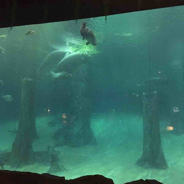 河川动物园的招牌项目《海牛野趣游》可以让游客体验亲手喂食小海牛的乐趣~看着可爱的美人鱼在手边卖萌求美食,真的幸福感爆棚呀!在海牛的展馆里还有超大的水族观景窗,虽然没有sea的大,但是胜在人少,很适合拍照~🌟萌萌哒团子!