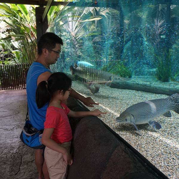大厅非常具有度假风。这些鱼好好玩。因为下了一场雨,毁了我们的乘船观光。可以从这开始观光② 河川生态园(River Safari)