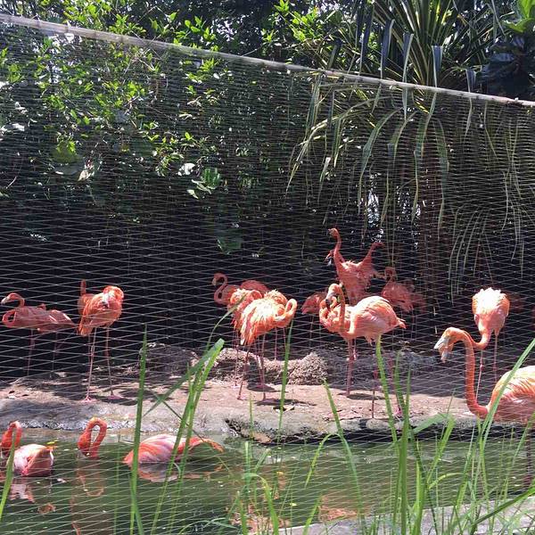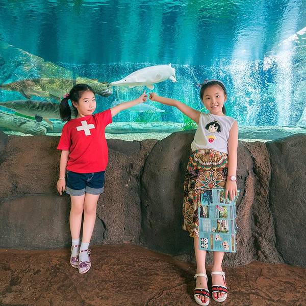 而我们满心期待的亚马逊探索游船因为设备维修停运一天,欲哭无泪第二天的行程就像段落标题写的那样——一段动物园的故事!新加坡有很多动物园,而且几个动物园也靠的很近,我们今天选择了河川生态园+新加坡动物园的组合,第一站河川生态园,Let’s Go!我们沿着地图顺时针方向...第二天的行程就像段落标题写的那样——一段动物园的故事!新加坡有很多动物园,而且几个动物园也靠的很近,我们今天选择了河川生态园+新加坡动物园的组合,第一站河川生态园,Let’s Go!我们沿着地图顺时针方向游园,我们首先来到了百汇河,这里模仿各国著名的河流汇合于此,从密西西比河、尼罗河再到我们中国的长江,在这里能看到各大河流的各种鱼类。首先看到的是密西西比河,和大地图合个影,假装在美国,哈哈~~这里有点像水族馆,有些水族箱里的小鱼儿三五成群,白银般的lin片闪闪发亮,发射出七彩的光芒。这条大鱼儿洁白如雪,身材苗条,好像高贵的鱼公主。园区内还有一个chu摸池,这儿有好多小生物。海星往往带给人们柔软的感觉,而真实的海星是粗糙的、硬硬的,手感一点都不好!这里不仅有国外的河流还能看到我们大中国的河流,长江就是其中之一。当然河川生态园最大的亮点就是这儿的熊猫馆。这里有两只熊猫一只叫凯凯、一只叫嘉嘉,寓意着“胜利”和“健康”,其中凯凯是熊猫先生,嘉嘉是熊猫太太。他们俩来自四川,不过不像上次我在四川看过的熊猫那么懒,他们有的时候吃竹子、有的时候还会摆pose呢,对了嘉嘉和我还是同岁,Yeah!离开了翠绿的竹林,沿着长lang走下去,可以看到一片开阔的湖面,湖上面有游船,不过爸比说今天的时间比较紧张也就放弃了乘船的打算。而我们满心期待的亚马逊探索游船因为设备维修停运一天,欲哭无泪~~好在景区给我们没人退了5新币作为补偿,可以到门口商店买些小东西。