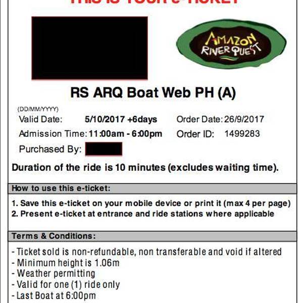 亚马逊河探索: 最后售票:下午3.29 | 最后游船: 下午4.30