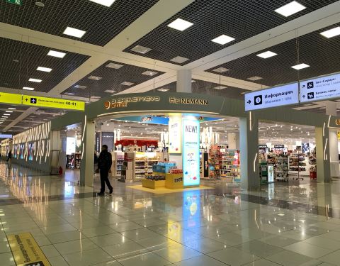 从北京去欧洲,一般是在谢列梅捷沃国际机场的 F航站楼下机,然后到D航站楼转机。航站楼之间的转机通道,有很多免税店和酒吧,沿标识走的话,最少也要半个小时,可见谢列梅捷沃机场有多大。