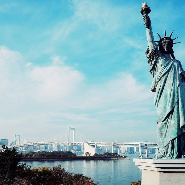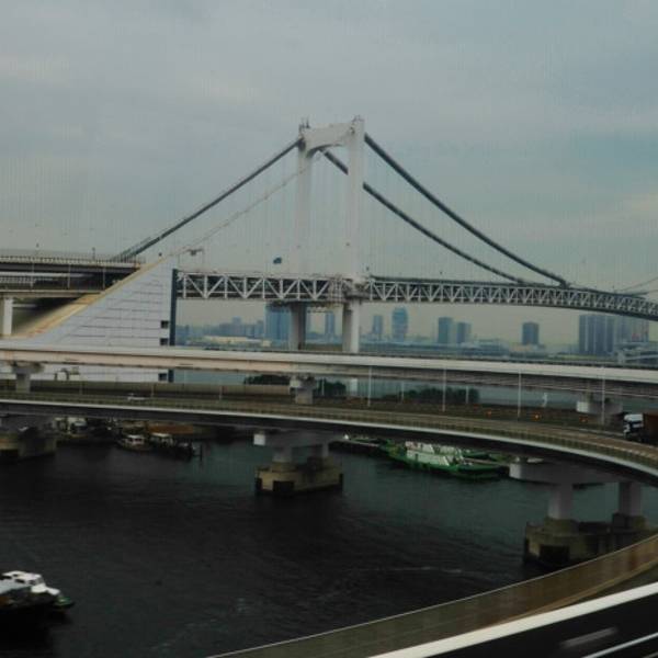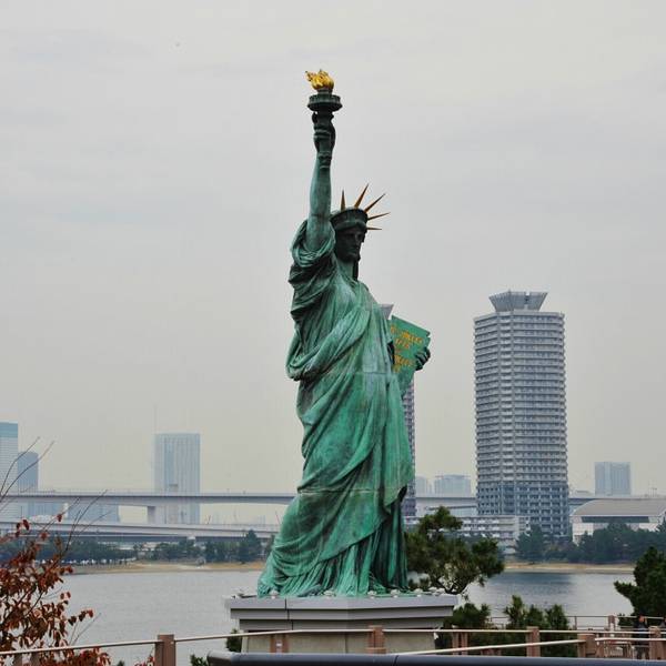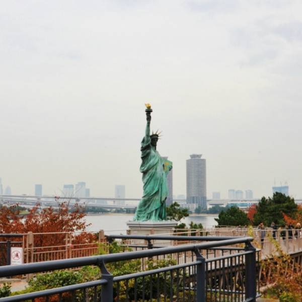 【彩虹桥,自由女神像】、迷你自由女神、巨型高达及彩虹大桥合影,融入日剧般的绚丽都市风光中。