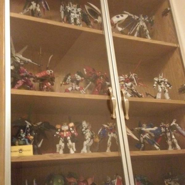 我让她自由挑喜欢的,结果她挑了一个seed destiny的拂晓。铁血UC派的我问她为什么选这台,她说因为这台全金的多浮夸啊。然后我默默的把手中的百式放了回去。