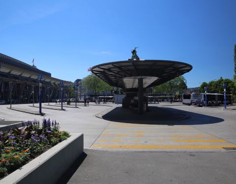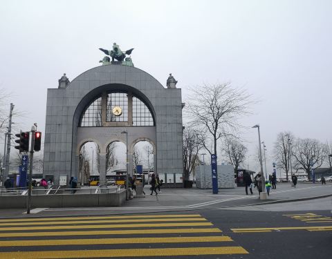 - 琉森火车站广场前有一经典的牌楼,顶上有铁路工人们雕塑
