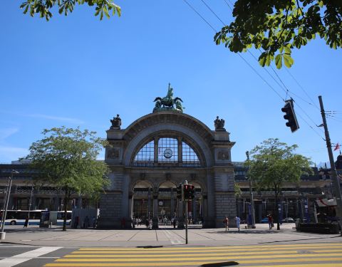 琉森地处瑞士中心位置,因此琉森火车站自然成为铁路运输的枢纽。 琉森火车站位于琉森湖畔,与琉森老城分别占据流森大桥的两侧,车站位于市中心,故交通非常便利。 琉森火车站广场前有一经典的牌楼,顶上有铁路工...琉森地处瑞士中心位置,因此琉森火车站自然成为铁路运输的枢纽。 琉森火车站位于琉森湖畔,与琉森老城分别占据流森大桥的两侧,车站位于市中心,故交通非常便利。 琉森火车站广场前有一经典的牌楼,顶上有铁路工人们雕塑。火车站入口与地下广场连通,没有大门,旅客可以自由出入。