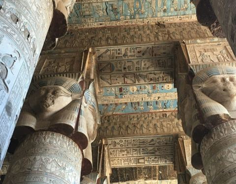 个人感觉这里也是整个卢克索地区游览最累的一座神庙。因为神庙内有许多巨大的石柱,撑起横梁哈索尔神庙又被称为丹达拉神庙,这里是专门供奉哈索尔女神的。个人感觉这里也是整个卢克索地区游览最累的一座神庙。因为神庙内有许多巨大的石柱,撑起横梁。在这些石柱和横梁上有着非常精美的壁画,他们都是一些...哈索尔神庙又被称为丹达拉神庙,这里是专门供奉哈索尔女神的。个人感觉这里也是整个卢克索地区游览最累的一座神庙。因为神庙内有许多巨大的石柱,撑起横梁。在这些石柱和横梁上有着非常精美的壁画,他们都是一些古老埃及神话的传说,十分的精彩,但抬头一直往上看还是非常累的,整座寺庙研究下来,头颈都非常的酸痛。 展开