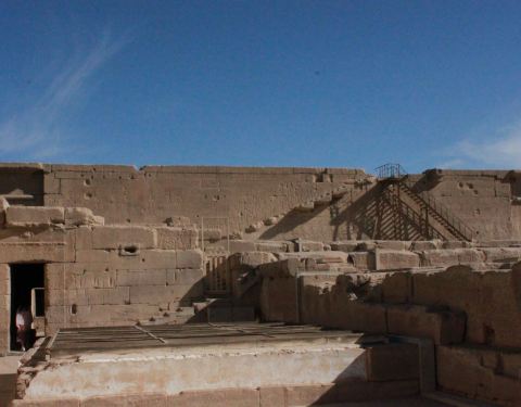 丹达拉的多座神庙都损毁严重,只剩一座哈索尔神庙,它几乎保持原貌,因留着克娄巴特拉七世的浮雕而闻名,值得你专程前来参观。克娄巴特拉七世是埃及在受罗马统治前的末代女王。 哈索尔神庙的主体建筑保留得十分完整,进去后右侧是两间接生房,旁边是科普特教堂遗址,再往里走便是神殿。神殿内部从墙壁到天花板都有精美完整的浮雕,色彩鲜艳美丽。尤其是天花板上,雕刻着十二星座的天体图和诸神驾驶太阳船穿越宇宙的场景。克娄巴特拉七世的浮雕在神殿南侧的墙壁上,轮廓鲜明,非常清晰。神殿后方有一个房间,可以通往地下墓室,那里有闻名的类似灯泡的壁画,很神奇。