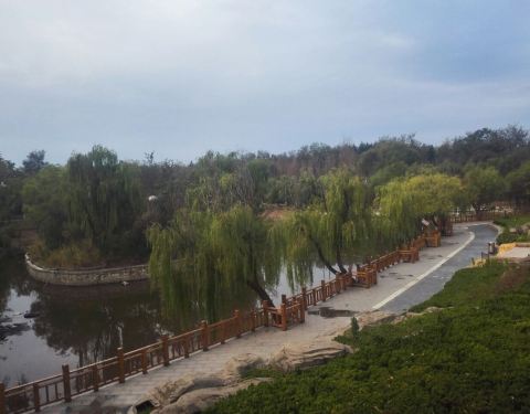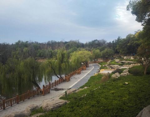 潍坊市辖区的高密县级市的一个地方公园,这里布置的很不错,好多人工美化的环境,植被覆盖率也蛮大的,树木很多,亭台楼阁很美的快。
