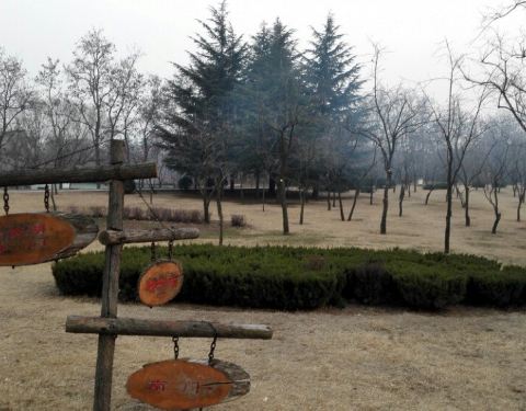 凤凰公园是高密市最大的公园,高密人逢年过节都有来这里的习惯,公园里的博物馆有高密三绝:扑灰年画、剪纸和聂家庄泥塑的传统民间艺术展览。来到公园直奔博物馆,门上的牌匾写的确是美术馆,春节没有开门,据周围的市民介绍这个馆已数次易名,馆里的陈列也说不太清楚了。
