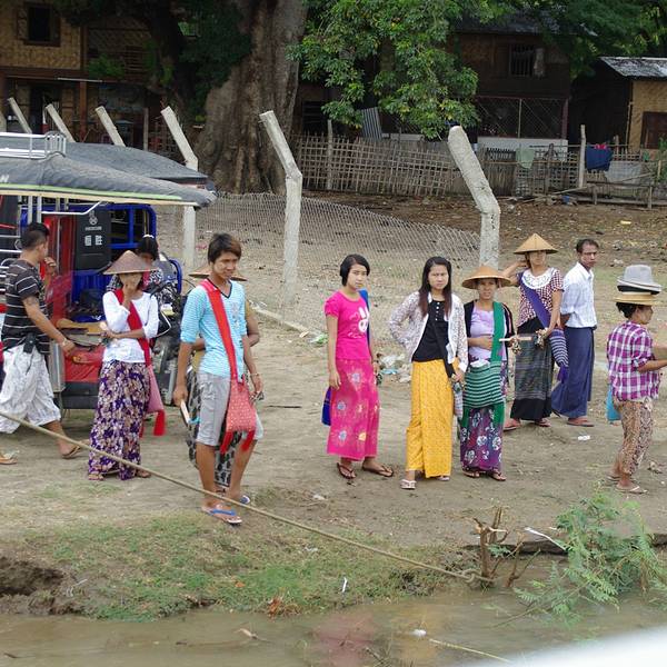 我们从80街的酒店开始出发走到码头大概步行了45分钟!!如果坐那些人力三轮...去mingun敏贡古城的船每日只有一个时间开出,同一只船返回