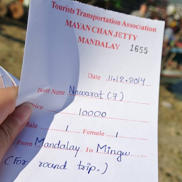 乘船,往返票價為5000k,碼頭...去mingun敏贡古城的船每日只有一个时间开出,同一只船返回
