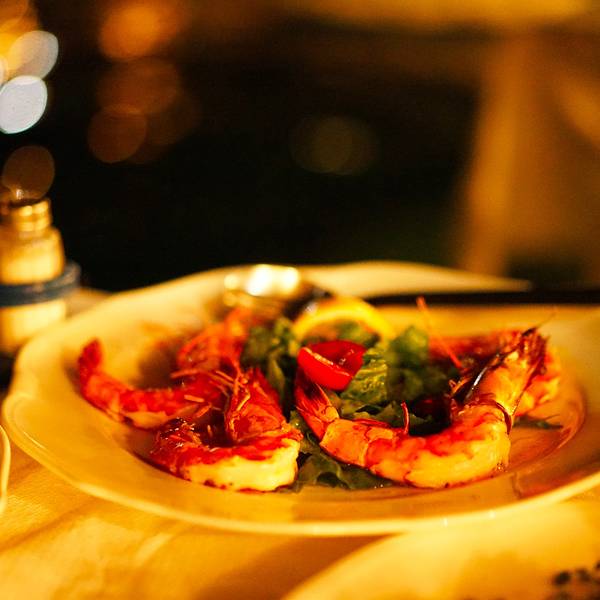 晚餐过后,结束在圣岛的第一天。去餐厅之前查一查招牌菜真是很重要。我们点了三个菜,虾,章鱼,还有烤鱼