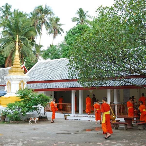 从琅勃拉邦的湄公河码头沿河向北步行400右转即可到达。