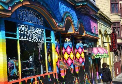 单是看看橱窗的摆设,也很好玩。旧金山蛮有意思的一个地方旧金山蛮有意思的一个地方。回到旧金山,趁租的车还没还掉,用谷歌导航过去的。感觉离旧金山市中心不是很远,开车大概20来分钟。这条街附近停车很不方便,兜了好几圈,才在2个街区外找到了一个停车位。嬉皮士区,...旧金山蛮有意思的一个地方。回到旧金山,趁租的车还没还掉,用谷歌导航过去的。感觉离旧金山市中心不是很远,开车大概20来分钟。这条街附近停车很不方便,兜了好几圈,才在2个街区外找到了一个停车位。嬉皮士区,曾经是美国自由精神的象征地,现在倒成了一条很有特色的商业街,街边奇奇怪怪的商店很多,有卖动物标本的,有卖中古衣服的,有卖恐怖主题物品的。。。单是看看橱窗的摆设,也很好玩。街上的嬉皮士虽然没有以前多,但是走几步路也能碰到几个,我们甚至遇到三个**在街上逛的男人,应该是这条街上的常客,因为走几步路就会停下来,嘻嘻哈哈地跟周围的人打招呼。 展开