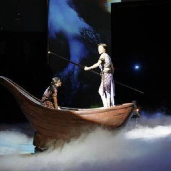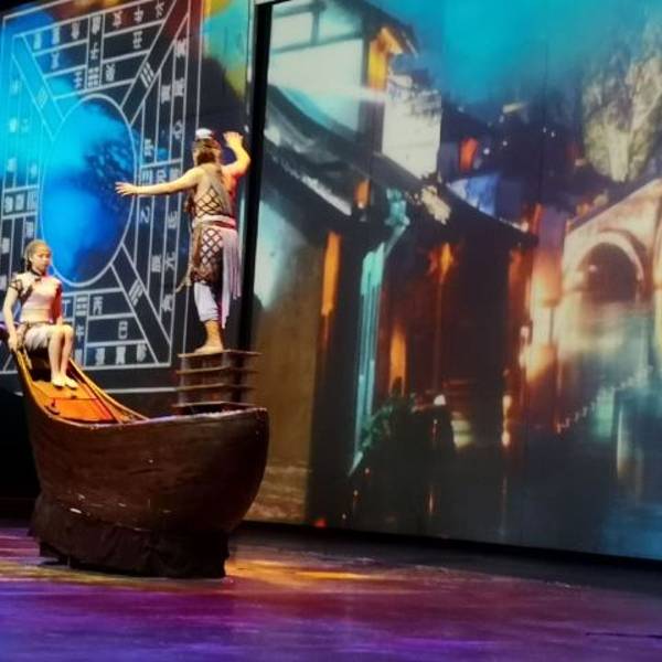 这一场集杂技、原创音乐、现场乐队、舞蹈、武术为一体,配合声、光、电、水幕、多媒体等现代化手段的多媒体梦幻剧。