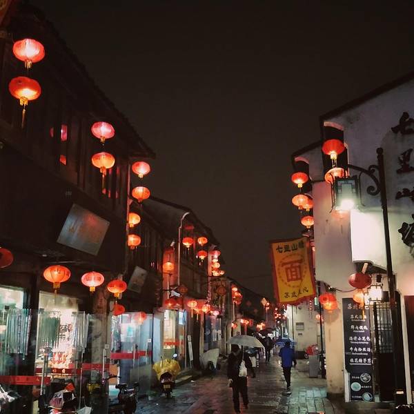 唐宝历二年,白居易从杭州调任苏州刺史,为了便利苏州水利交通,开凿了一条西起虎丘,东至阊门的山塘河,山塘河河北修建道路,称为“山塘街”。夜色朦胧~很有诗意(〃'▽'〃)山塘河和山塘街长约七里,称为“七里山塘”,自古山塘街就有“姑苏第一街”的美誉,清乾隆帝对山塘街情有独钟,回京后更是在颐和园仿照七里山塘修建了苏州街。山塘街是苏州古代的金粉地,闹市区(类似于南京夫子庙)红灯笼热热闹闹~古建筑梦回千年是典型的江南水乡,家家户户前街后河,河上小船来来往往,街上店铺林立,山塘河上横跨7座桥:山塘桥,通贵桥(又叫瑞云桥),星桥,彩云桥(又叫半塘桥),普济桥,望山桥(曾名便山桥)和西山庙桥。