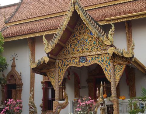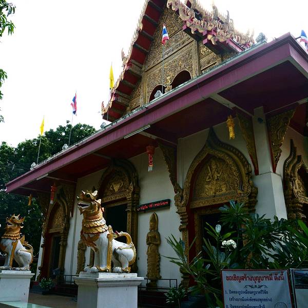 ...碧辉煌,却闹中取静,游人很少,是我觉得寺庙该有的样子清迈的寺庙大多是一栋佛殿一座佛塔的组合形式沿着Ratchadamnern Rd.径直向前走就可以遇到这座寺庙。寺庙不大,但是像是刻意装扮了一番不知道是不是有什么节日。寺庙装修得金碧辉煌,却闹中取静,游人很少,是我觉得寺庙该有的样子清迈的寺庙大多是一栋佛殿一...沿着Ratchadamnern Rd.径直向前走就可以遇到这座寺庙。寺庙不大,但是像是刻意装扮了一番不知道是不是有什么节日。寺庙装修得金碧辉煌,却闹中取静,游人很少,是我觉得寺庙该有的样子清迈的寺庙大多是一栋佛殿一座佛塔的组合形式攀安寺的佛殿是典型的兰纳风格寺庙 建筑的主题色就是金,红两色,高贵大气而不俗艳,让人的敬畏感油然而生.泰国无论寺庙大小所有的佛殿都需要脱鞋进入 不过不用担心里面的地板都很干净女生不要穿短裙短裤之类的,穿的衣服露肩膀就用披肩遮一下 男生不要穿短裤背心。据说寺庙内可以求签而且很准,但是我们去的时候不知道,只能说是遗憾啦。 展开