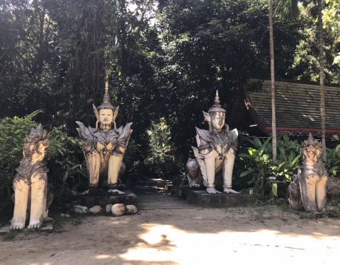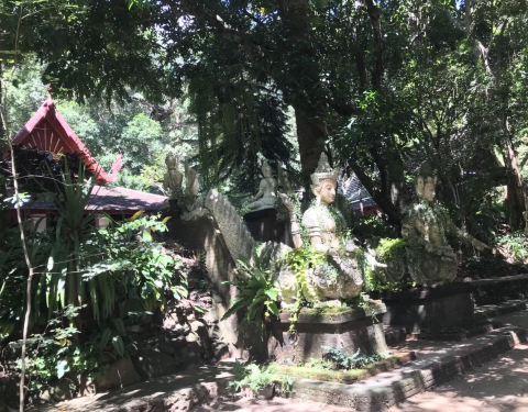 老外与当地人喜欢从山下溯溪向上,可至这个寺庙,门口人面兽身像相当貔貅,内有塑像已缠䕨蔓,似袈裟...好清幽寂静的庙宇,老外与当地人喜欢从山下溯溪向上,可至这个寺庙,门口人面兽身像相当貔貅,内有塑像已缠䕨蔓,似袈裟裹身,塔身也是绿植斑驳,简易的木制结构供奉着神佛,听着鸟鸣伴着潺潺山泉,怪不得当地人...好清幽寂静的庙宇,老外与当地人喜欢从山下溯溪向上,可至这个寺庙,门口人面兽身像相当貔貅,内有塑像已缠䕨蔓,似袈裟裹身,塔身也是绿植斑驳,简易的木制结构供奉着神佛,听着鸟鸣伴着潺潺山泉,怪不得当地人都喜欢在此打坐。从金碧辉煌的双龙寺再到这里原汁原味的兰纳寺庙,果然味道不同。 展开