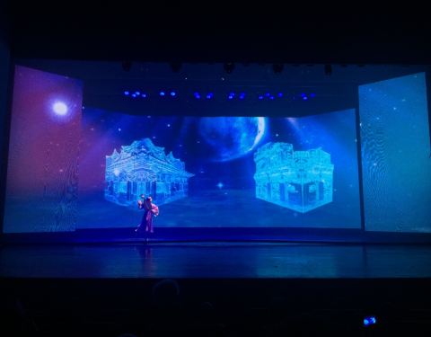 剧以时空穿越回明朝闽南的手法,以阿妹阿明相知相爱,阿明下南洋闯荡,最终成婚为主线,展示了木袋戏,南音剧以时空穿越回明朝闽南的手法,以阿妹阿明相知相爱,阿明下南洋闯荡,最终成婚为主线,展示了木袋戏,南音,拍胸舞等闽南文化,通过声,光,影加深闽南传统文化的认识。