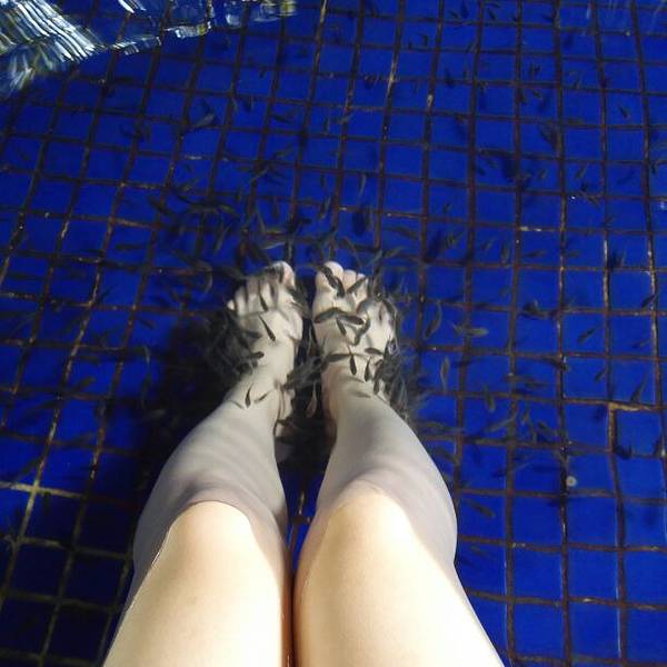...温泉种类也很多,什么花瓣浴、桂花浴、中药浴……最值得一提的就是鱼疗池了,好多小鱼啃你的脚,好玩淋浴间的温泉很干净舒服,外面温泉种类也很多,什么花瓣浴、桂花浴、中药浴……最值得一提的就是鱼疗池了,好多小鱼啃你的脚,好玩!当然服务也没的说。最后换里面的衣服到休息区喝酸梅汤看电视。