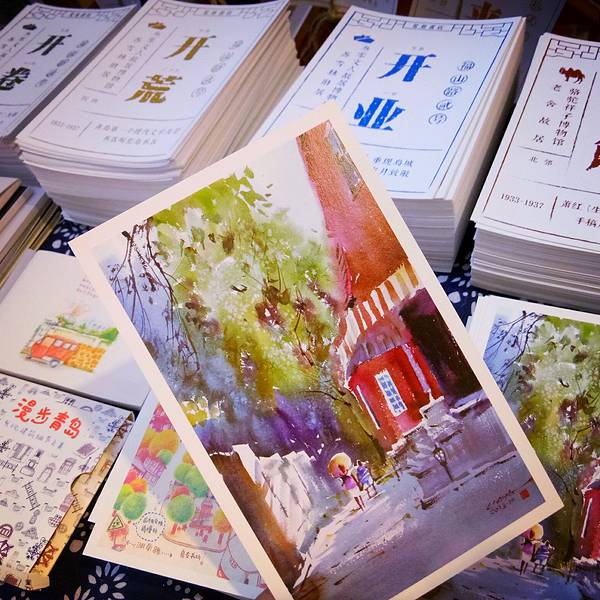 荒岛书店从外面看是一座偏欧式风格的红房子,美观大气,让人迫不及待的想要进去瞧一瞧。进入书店,一眼就看见右侧摆有很多明信片,走过去看了看,老板娘就很热情的给我介绍,这些明信片都是原创的,大部分是青岛的景色。