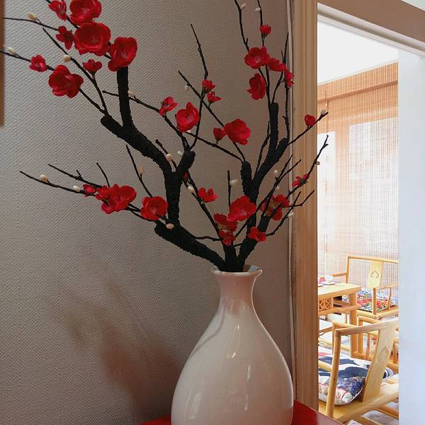 右边的信纸上还有游客留下的毛笔字,也是很美观呢,看来以后得多练练字了。地上摆了四副画,好像画的是名人的漫画肖像,第一反应感觉是相声演员,看起来有些面熟,却也叫不出名字。一转身,发现桌上摆了一些古香古色的东西,木质的艺术品,总是让人移不开目光,无论从哪个角度看,都美得不像话。最爱的要数那一瓶梅花了,给她一个近景。准备离开了,走到楼梯跟前,忍不住来一张自拍,用我手机自带的相机,效果也是可以的。原谅我一不小心臭美了一下~