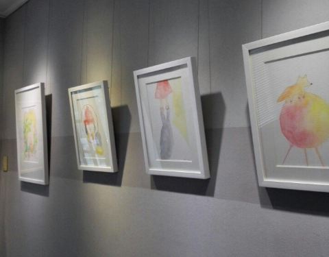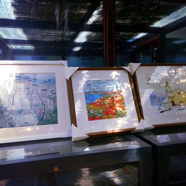 按照从小到大的顺序,我决定先去最右侧的小店看一看。推门进去,屋里格外安静,还有一对男女正在看书,桌上有一些画,应该是供游客观看的。这些画画的都是建筑,色彩鲜艳,别具一番风味。