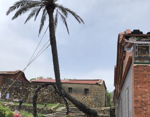 车站位于山外与新市里的交界,是一栋四层楼的建筑,它同样也是「 金门 县公共车船管理处」之所在, 台湾 好行观光公交车的C、D及E线则以山外车站为发车点,山外车站的马路正对面即为出租车的排班区,对于需要转乘的旅客来说相当方便。我们玩C线狮山民俗村线在这里等。金门民俗文化村实际为“山后聚落”其中的中堡,是 金门 第一个开放为观光景点的聚落。其中的18座古厝,包括16栋对称公正的二进式双落古厝,一座宗祠堂和一座学堂,又有“山后中堡十八間”之称。于清光绪26年建造,历时25年才完工,1979年正式更名为“民俗文化村”。因为很早就开放为观光景点,所以这里的每一栋古厝都可以入内参观,最前排的几栋也已商业化运作,变成小吃店和纪念品店。这里的古厝规划整齐,有意而为之的建造,使得每栋房屋依山面海、井然有序,更显大气之范。飞天的燕尾脊在空中交错,勾勒出古朴的线条,一条条笔直的巷弄成为游人争相合影的地点。导游是金门人,和我聊的挺欢,说他们以前怎么躲炮。哈哈哈!这天有点热! 展开