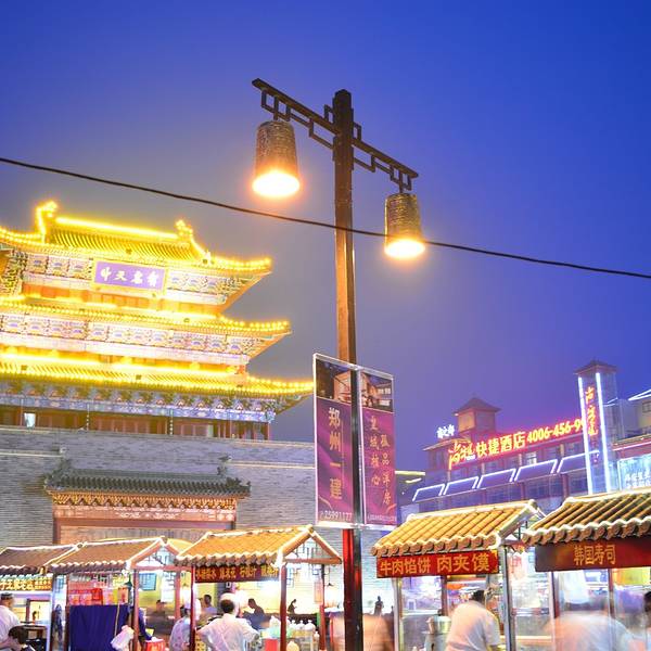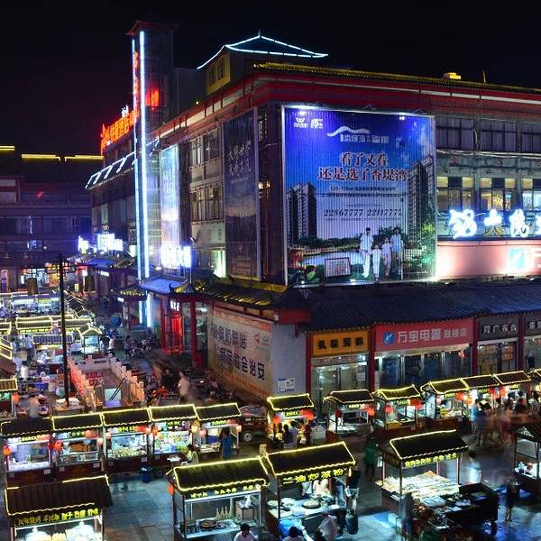 鼓楼这边是老区市中心,商业氛围浓厚,特产较多。吃完小吃,赏罢夜景,主干道下面有一条很长的地下购物街,价格适中质量高,同样适合有购物需要的游客选择。鼓楼尤其到了夏季,游客每晚络绎不绝,摩肩接踵,人山人海。鼓楼夜市商业街繁华的夜市景象小吃方面,个人推荐几款有代表性的小吃,诸如杏仁茶,八宝饭,椰子糯米饭,特色烧烤(信阳烤鱼)等;主食类的有杞县烧饼,开封灌汤小笼包等。如果要选一些特产馈赠家人,包公酥,桶子鸡,酱牛肉等。沿着鼓楼大街走走,你会邂逅包公湖。湖光,楼宇,市集,静寂与喧嚣的交织,勾勒出鼓楼夜景这幅美轮美奂的图画。流光叠彩,远观鼓楼灿烂霓虹。湖畔,又是谁抚琴低诉。如果时间充裕,沿着开封湖继续走走,你又将邂逅北宋旧时府邸--开封府。吃货的天堂,文化与艺术的融合。这,就是开封鼓楼。到开封不得不赏夜景,逛小吃首当选鼓楼。繁华市集,醉美湖韵,幽幽历史,是景,是物,是人。开封鼓楼,你不可错过! 展开