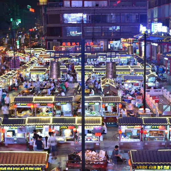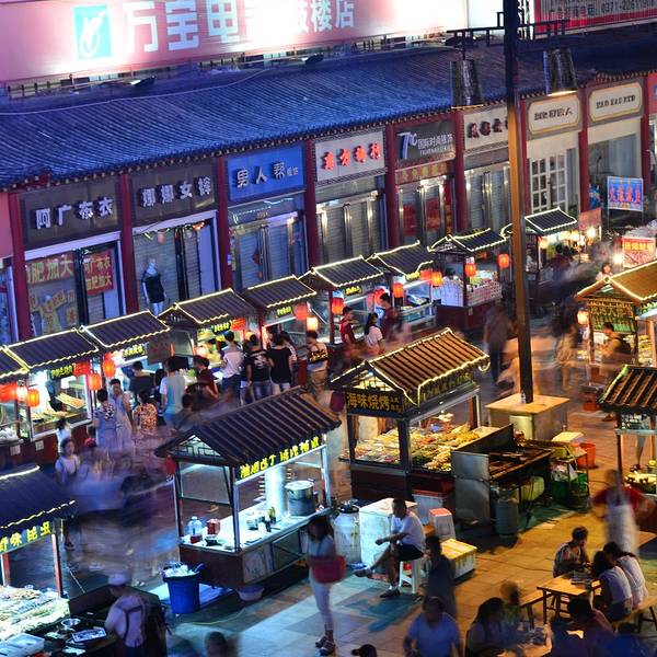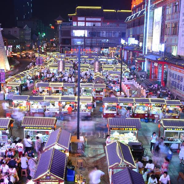 鼓楼边上几条贯通的长街 晚上串联成热闹的夜市鼓楼的人人人小吃有不少小吃与糊糊