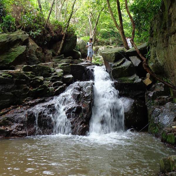大门就是这个样子山下有个还不错的人工湖,游人在四周小憩或者打牌湖边的花树也开的挺灿烂的跟着路牌就可以山上了沿路还有养蜂人的蜂巢郁郁葱葱的树,不算太陡的台阶山间的泉水叮咚,可是千万不要喝,可能有寄生虫沿着山路走约20分钟就可以看见这个亭子了,可以歇歇走过这座桥就是瀑布了邂逅一只很酷的毛毛虫,各种奇形怪状的虫子多了据说这里主要有‘四多两丰富’的特点。