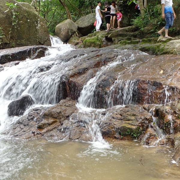 最好看的就是下面这些了巨石挡道络绎不绝的游人看完瀑布,跟着路标换另一条线路折返,从【石岩登山道】下山,最下面是一片绿色的草原,环抱着层峦叠翠的羊台山,明白了【羊台叠翠】的真正含义。该景点免费,建议游玩时间为4-6小时,天黑之前必须下山。