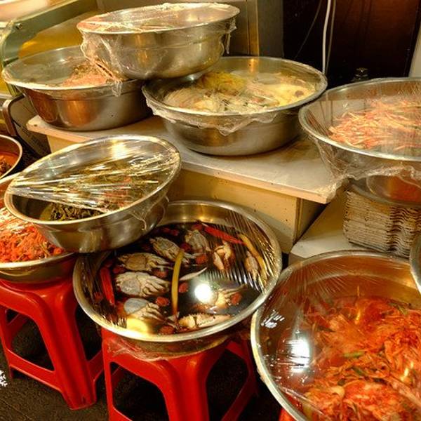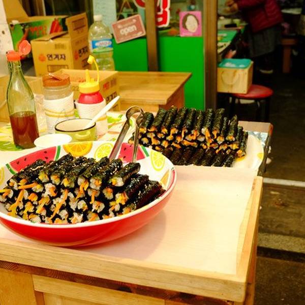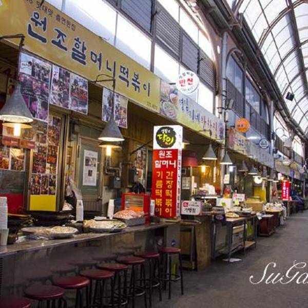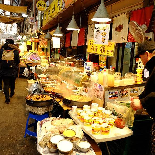 通仁市场,一个很具韩国特色的市场,市场里面有许多许多店铺,各式各样的韩国传统小吃让人眼花缭乱。通仁市场最大的特点就是要先在二楼的游客中心用韩元兑换铜币(约10枚铜板/5000韩元),然后就可以拿着空便当盒在在下面的小摊上挑选各种小食,最后回到游客中心购买米饭和汤。