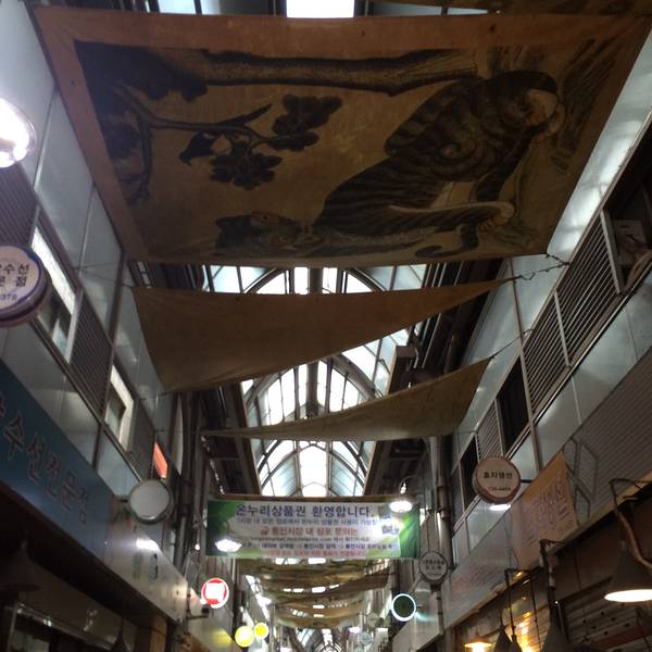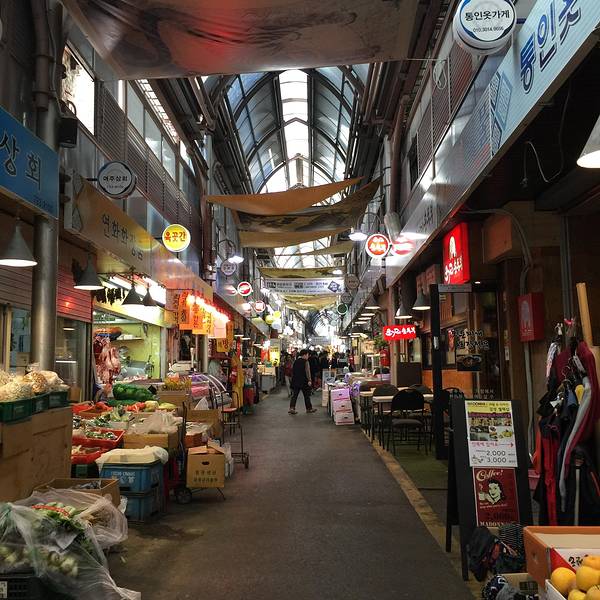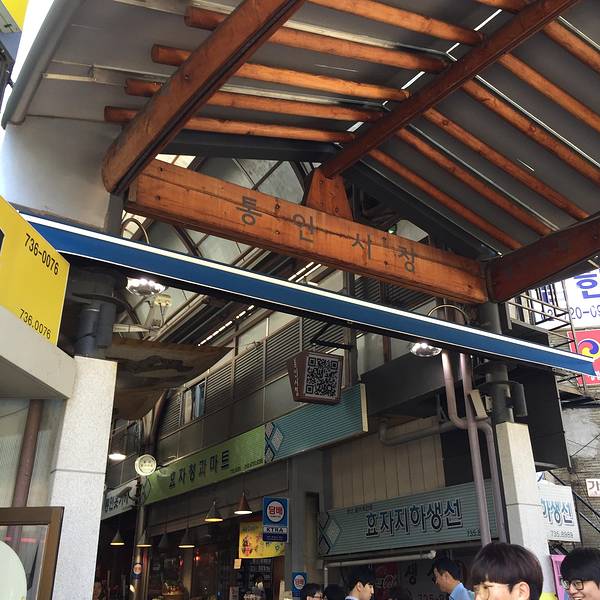 在 大悟 书店附近有一个传统市场——通仁市场。没错,不是那个耳熟能详的“广藏市场”,通仁市场最特别的地方在于,用铜钱套餐。你需要在特定时间内将韩元更换成铜钱并配有一个便当盒,再到各个摊位消费。当天去...在 大悟 书店附近有一个传统市场——通仁市场。没错,不是那个耳熟能详的“广藏市场”,通仁市场最特别的地方在于,用铜钱套餐。你需要在特定时间内将韩元更换成铜钱并配有一个便当盒,再到各个摊位消费。当天去的时候,很多摊位已经打烊,一个在整理铜钱的姨母告知,特色便当营业时间:11点-17点。通仁市场通仁市场通仁市场人气火爆的“孝子洞鸡肉串”,下次去试试。通仁市场这类市场,除了卖一些炸物小吃外,还有蔬菜水果和日用杂货等。通仁市场路过的“通仁韩药馆”,光看门头外景,就很有感觉。里面挂着的那句汉字“古部文章二百年”?
