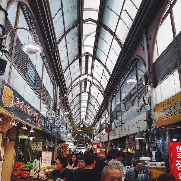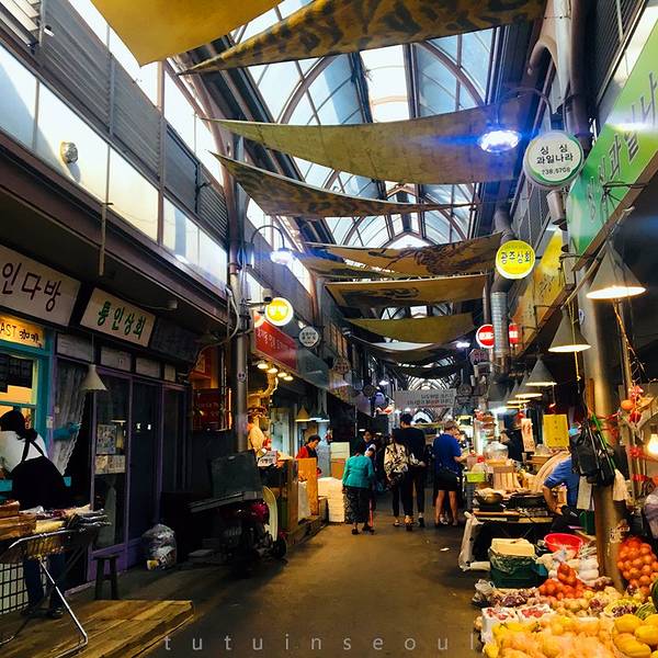 在路中间的药店买的通便药很赞,是首尔最便宜的,比我在明洞的要便宜500won! 没等走到市场我们饿的不行了。。就找了一点街店吃了。。感觉都是local的人吃的。。。 好彩吃饱了。。去到市场我感觉我吃不惯。。 主...